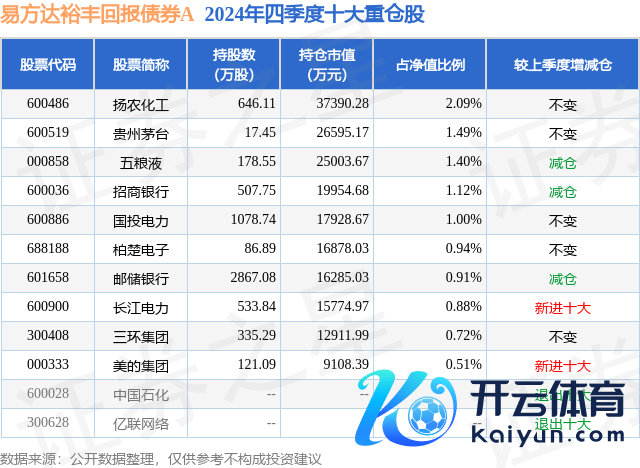 易方达裕丰陈诉债券A为债券型-搀杂二级基金,阐发最新一期基金季报透露,该基金钞票成立:股票占净值比13.92%,债券占净值比114.95%,现款占净值比0.79%。基金十大重仓股如下: